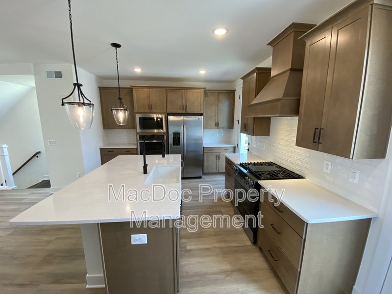 The first floor features a private guest suite with a full bath—an ideal retreat for visitors or extended family. On the main level, the open-concept design showcases a show-stopping kitchen with an oversized center island, upgraded cabinetry, quartz countertops, and a pantry, with access to an optional deck for outdoor enjoyment. Flowing seamlessly into the living and dining areas, this space is perfect for both relaxing evenings and entertaining guests.