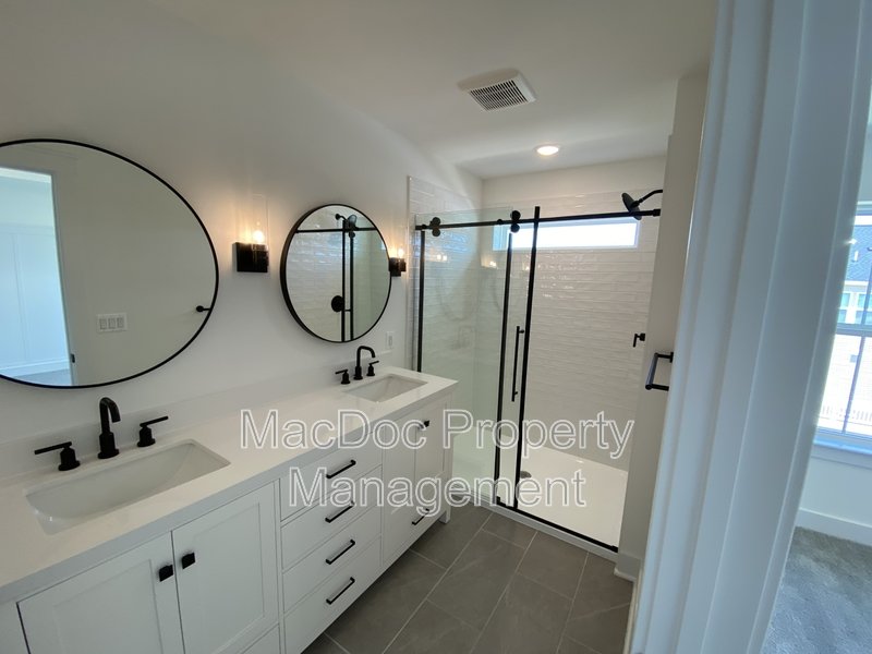Upstairs, the luxurious primary suite is filled with natural light from triple windows and includes a spacious walk-in closet. The spa-inspired bathroom features dual sinks, upgraded cabinetry, quartz countertops, a walk-in shower, and designer ceramic tile. Additional bedrooms are well-sized and versatile, while brand-new window blinds throughout add a polished, move-in-ready touch.