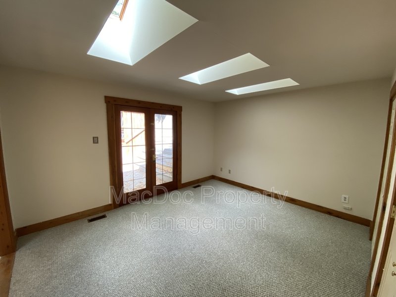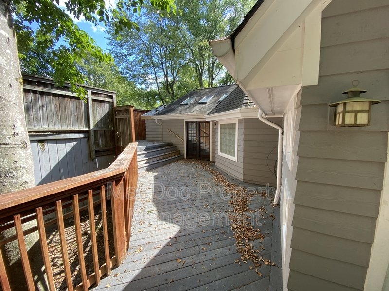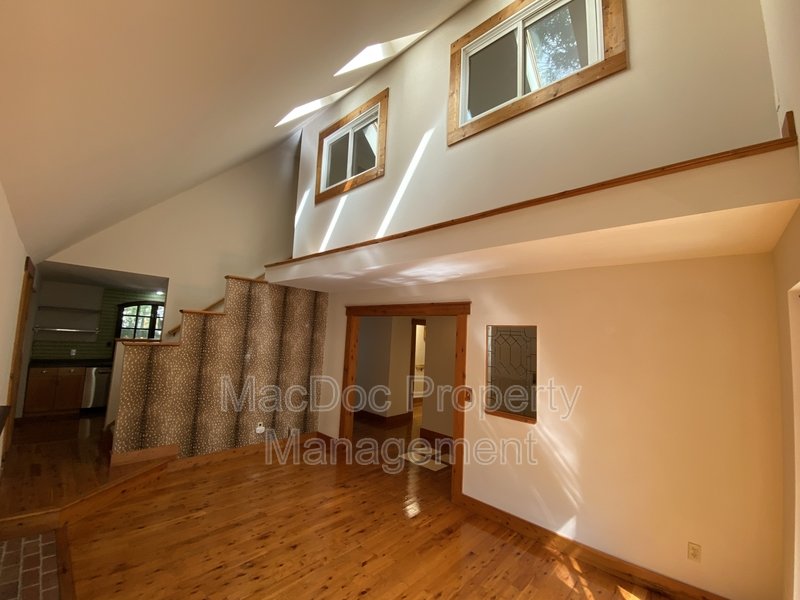 Welcome to this charming and inviting rambler, offering 4 bedrooms, 2.5 baths, and over 2,000 sq ft of comfortable living space. The main level showcases beautifully refinished hardwood floors, a spacious open living area with vaulted ceilings, and large bay windows that flood the room with natural light. The well-appointed kitchen features stainless steel appliances, stylish accents, plenty of cabinet space, and open shelving. The primary bedroom is a peaceful retreat, with French doors leading to a large back deck and tranquil yard, as well as a soaking tub and a cozy fireplace. The garage, complete with front and rear doors and a second-story loft, adds extra versatility. Outside, the fully fenced backyard is a private oasis, featuring brick patios, walkways, and an expansive deck. This home is creatively designed, allowing you to showcase your unique style! Conveniently located just off Leavells Road, you'll have quick access to shopping, dining, and Loreilla Park.