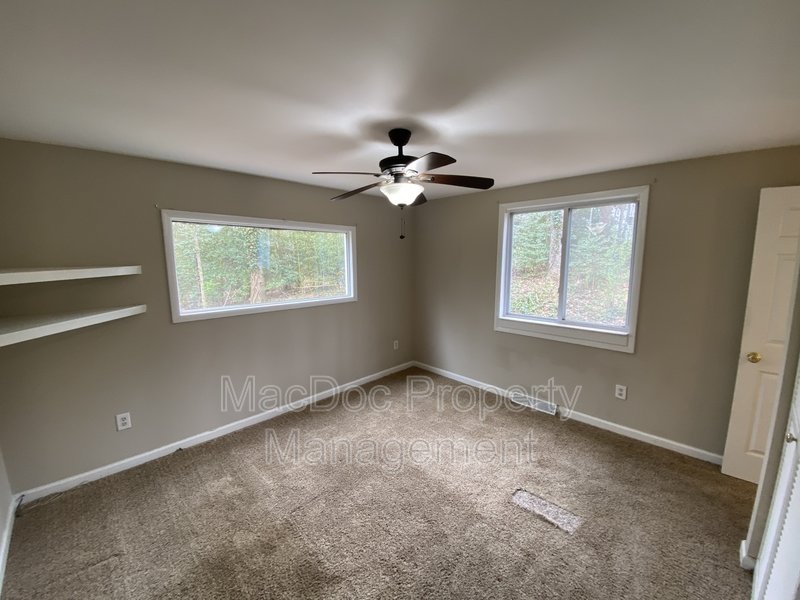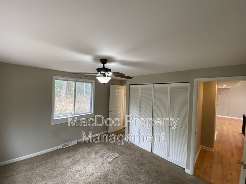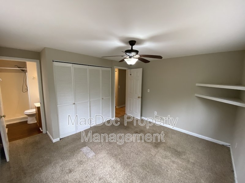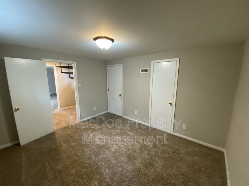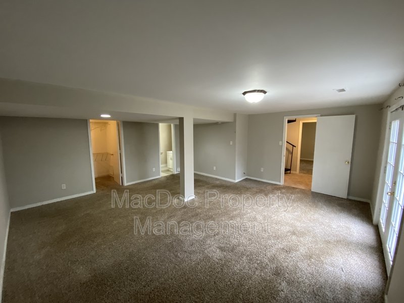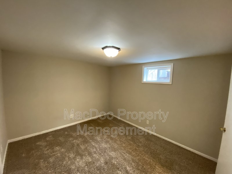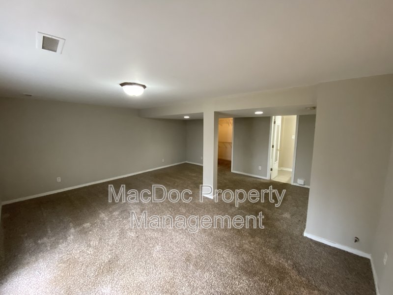 The home features three bedrooms, each with cozy carpet flooring and ample closet space. Downstairs, you'll find a dedicated storage and laundry area, along with a bonus room ideal for an office or creative space. The lower level also includes an additional bedroom with its own bathroom and a walk-in closet, providing privacy and versatility for guests or extended family.